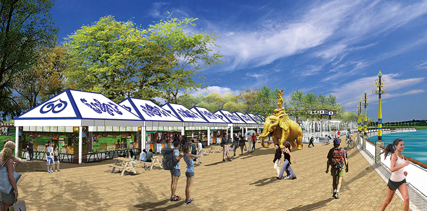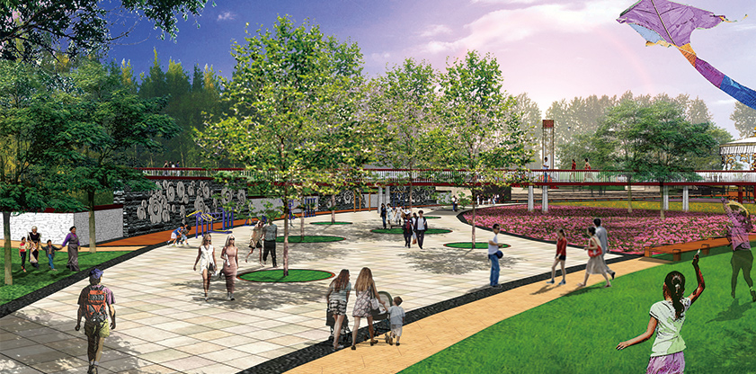 “高原新藝”緊鄰未來的城市商業(yè)中心,整體規(guī)劃中更著重于商業(yè)休閑綠地的營造,在景觀設(shè)計(jì)中體現(xiàn)了城市河道對城市休閑提空間的價(jià)值,以更加親人的尺度打造濱水步行景觀空間,以藏族傳統(tǒng)藝術(shù)體驗(yàn)為主,開展藏戲演出、藏餐、工藝品制作等休閑項(xiàng)目,通過閘橋、碼頭與對岸緊密相連,使商業(yè)地塊與公園能夠相結(jié)合,共同作用,凝聚更多更豐富的人文活動(dòng)。