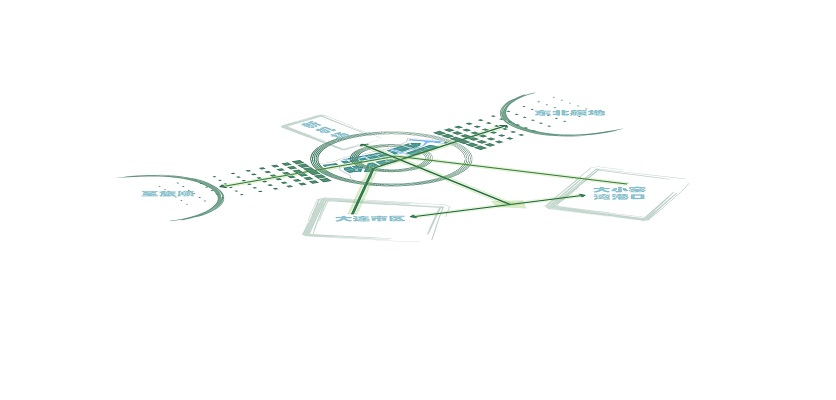 流動、生態:城市是流動的藝術,最能體現一個城市的效率。大連機場定位為“東北亞門戶雙樞紐機場”,流動更成為了本次空港產業區的首要訴求,以“流動”的理念闡述本次規劃設計。通過綠色體系的流動、交通的流動、功能的流動、產業的流通與創新、能源的流動、低碳生態的流動等,凸顯本項目以空港為核心的流動特性。